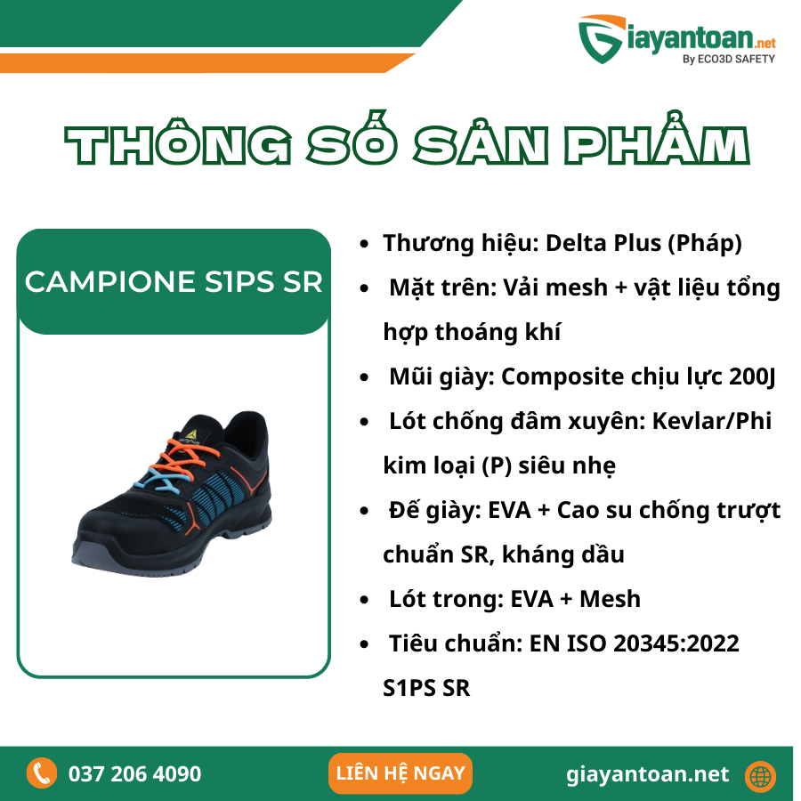 Thông số kỹ thuật của Giày Bảo Hộ Delta Plus CAMPIONE S1PS SR