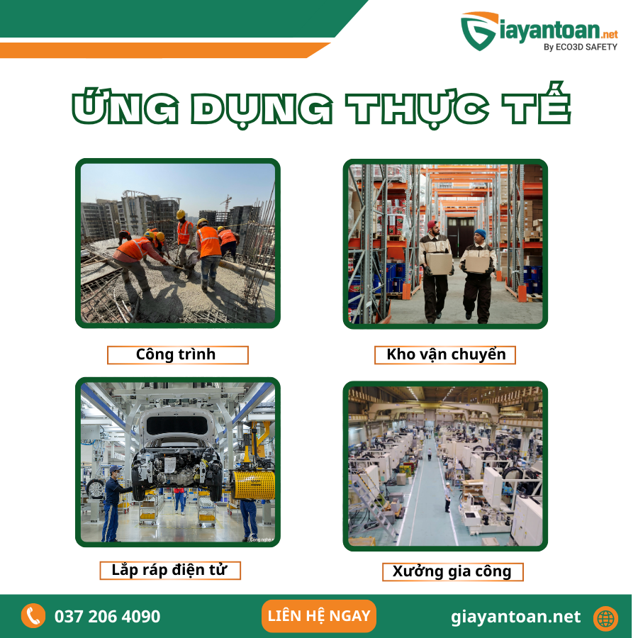 - Công nghiệp & xây dựng: Bảo vệ tối đa trong các môi trường kho bãi, nhà xưởng, công trình xây dựng.