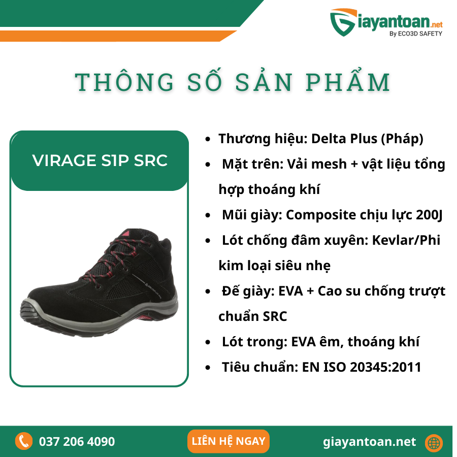 Thông số kỹ thuật của Giày Bảo Hộ Delta Plus VIRAGE S1P SRC
