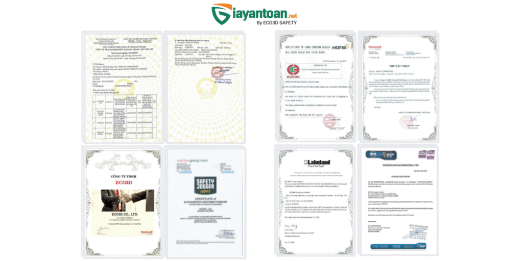 Tất cả sản phẩm giày bảo hộ Kingpro chính hãng đều đi kèm chứng nhận EN ISO 20345, ASTM và CO/CQ rõ ràng. Doanh nghiệp hoàn toàn yên tâm khi làm việc với đối tác nước ngoài hoặc dự án kiểm định nghiêm ngặt.