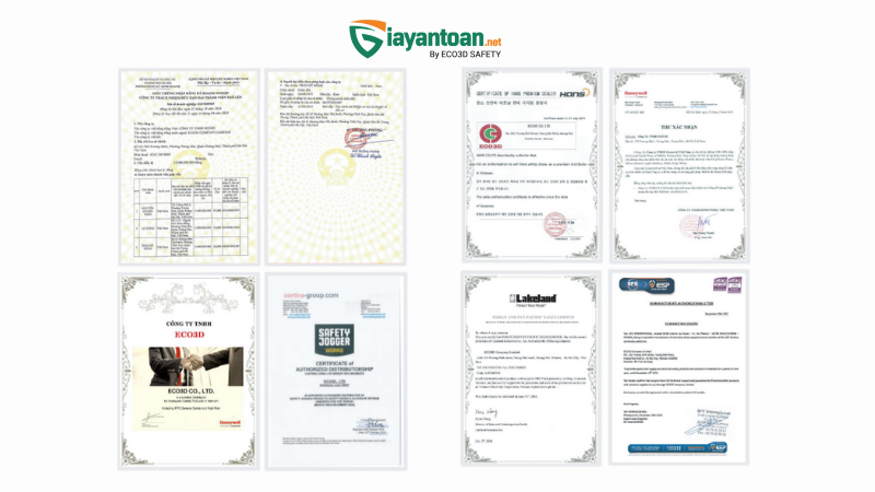 Giấy chứng nhận hợp tác với các hãng bảo hộ lao động nổi tiếng nhất trên thế giới.