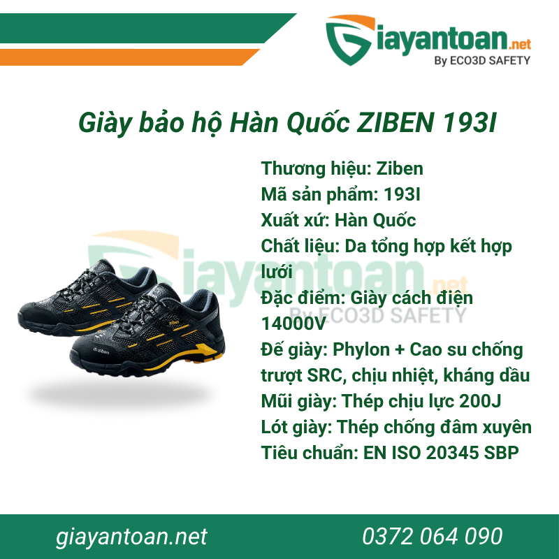 Thông số kỹ thuật của Giày bảo hộ Ziben 193I